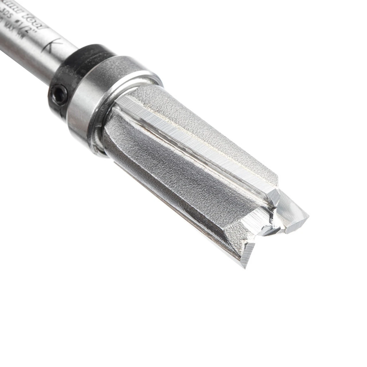 These flush trim plunge router bits are versatile, useful for template/pattern routing of parts,joints, and internal cuts, and can be used in hand-held and table-mounted routers. They are essentially plunge-cutting straight with shank-mounted ball-bearing pilots.