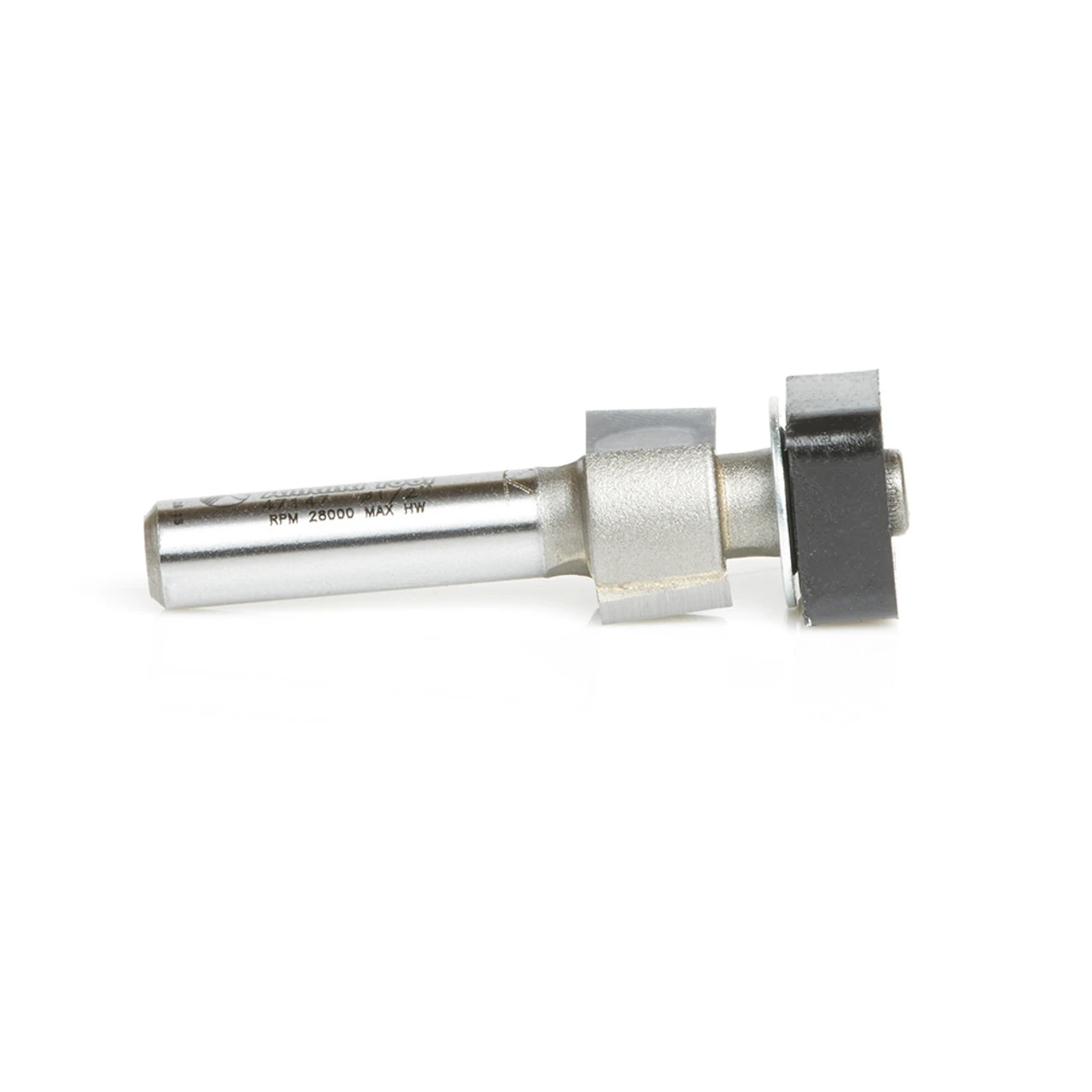 Amana Tool® industrial carbide tipped laminate trim bits with the Euroâ„¢ Square Bearings. The bits are designed according to specifications with a slight taper allowing for adjustment up or down on the work edge to finish off the edge with a smooth and burr free cut.Â