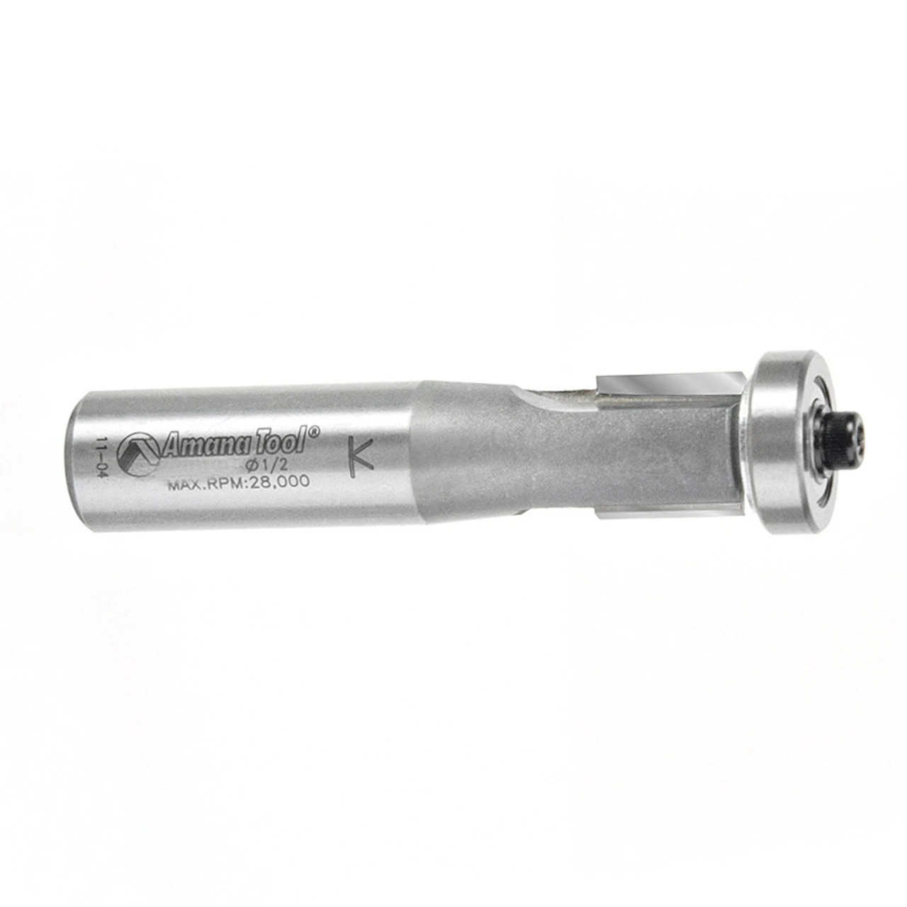 Used for preliminary laminate trimming, leaving a small overhang. Reduces chipping of material caused by excessive feed-rate or vibration. Final pass can be achieved using a standard trim bit, or Amana Tool® ‘No-Fileâ„¢’ bit.