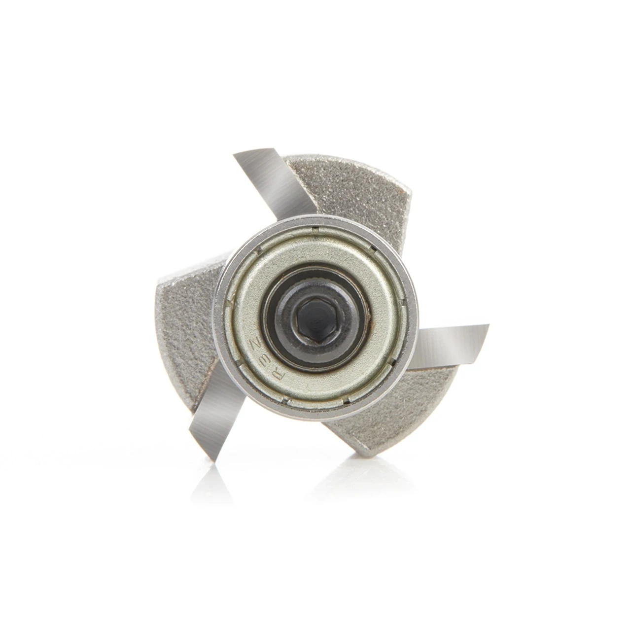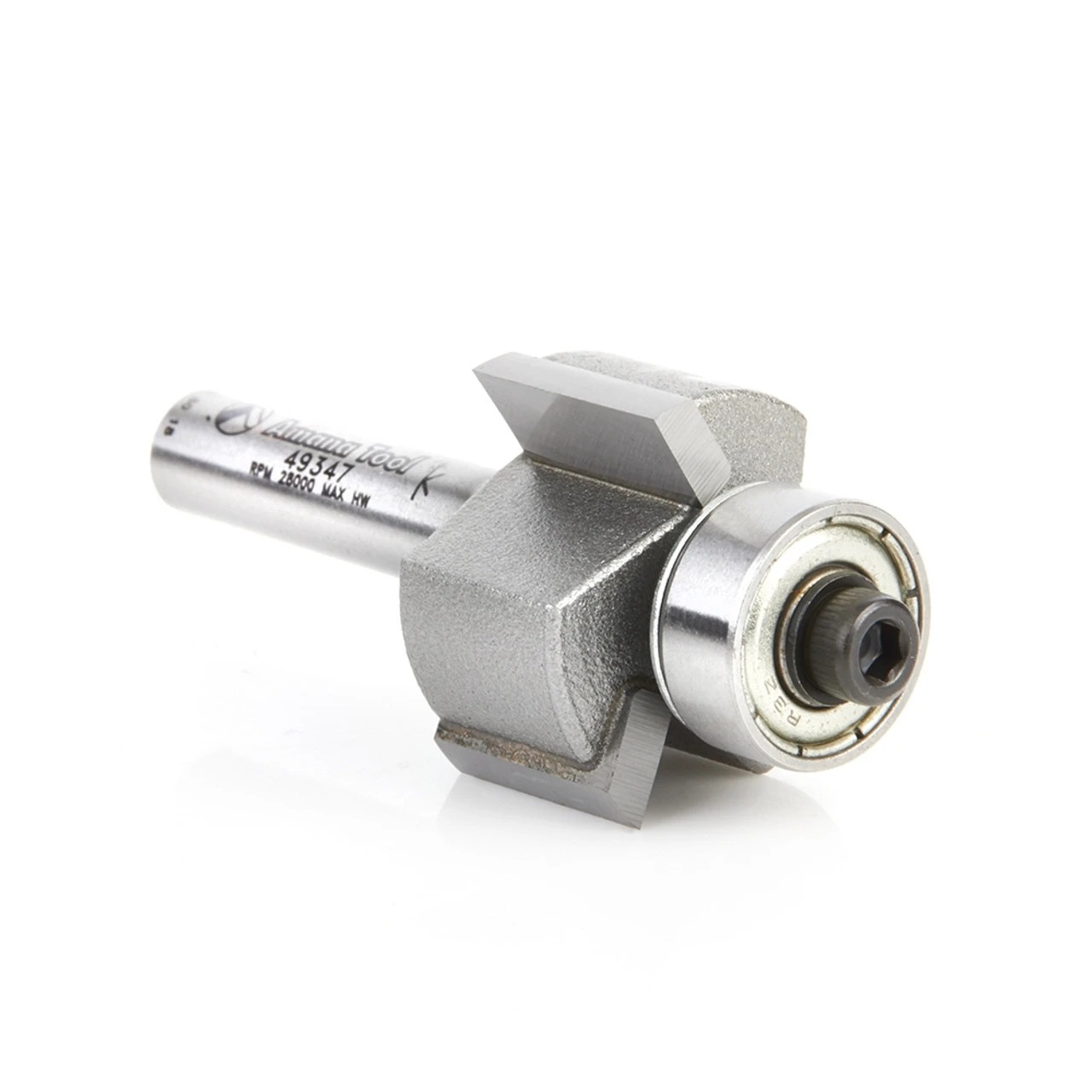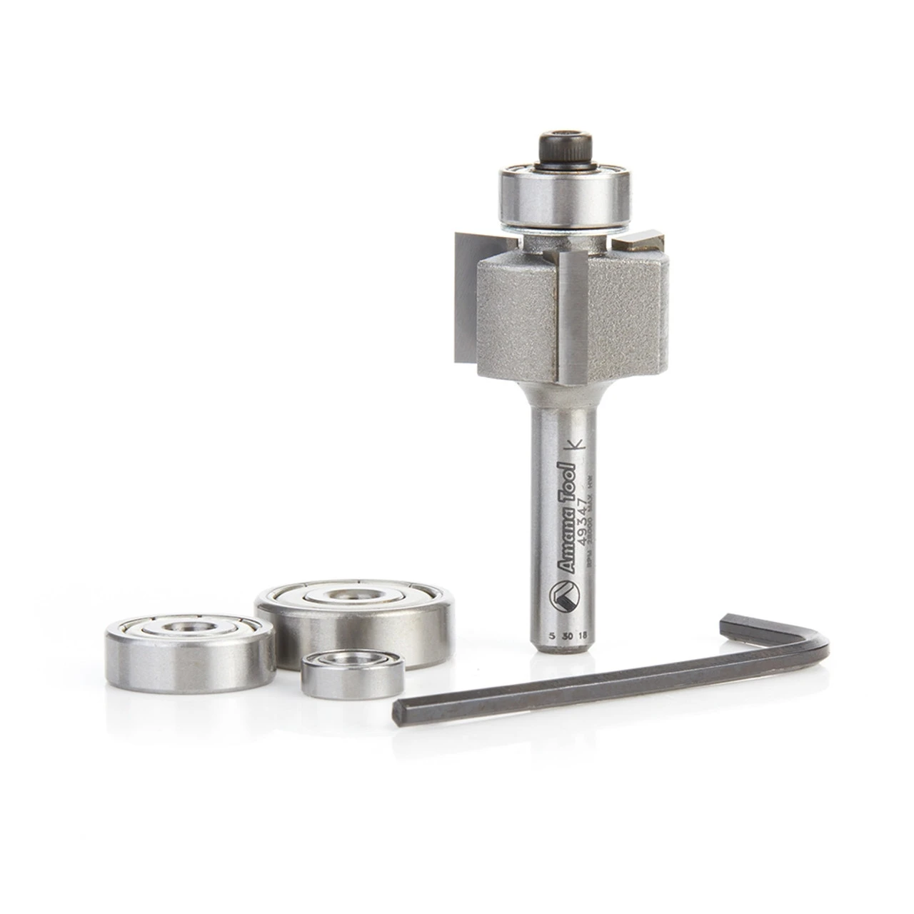 The Multi-Rabbet bit steps in 1/16″ increments from a 1/16″ cut width to 1/4″, simply by switching ball-bearing guides. Four different bearings are provided. Depth of cut capacity of 1/4″.