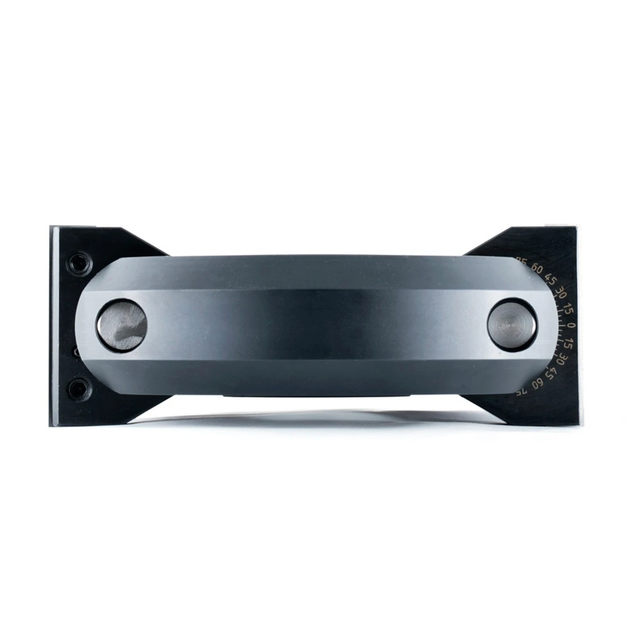 Cutter head bodies available in hard wearing aluminum or steel, complete with tungsten carbide knives. Suitable for producing chamfer cuts at various angles in softwood, hardwood and man-made boards on a spindle molder. Cutting angle can be adjusted in 7.5° steps by using notched scale.