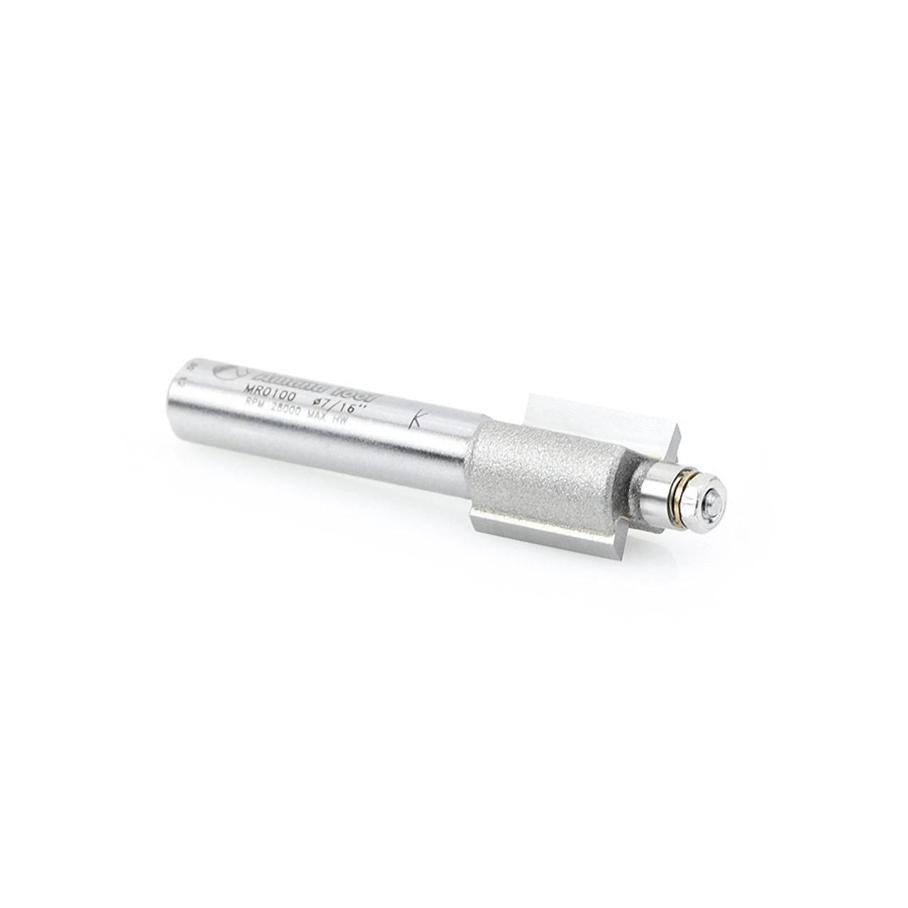 Unlike traditional miniature router bits using brass-pilots, Amana Tool® uses tiny 3/16” diameter ballbearing guides, eliminating burn marks (burnout) caused by brass pilot bits.