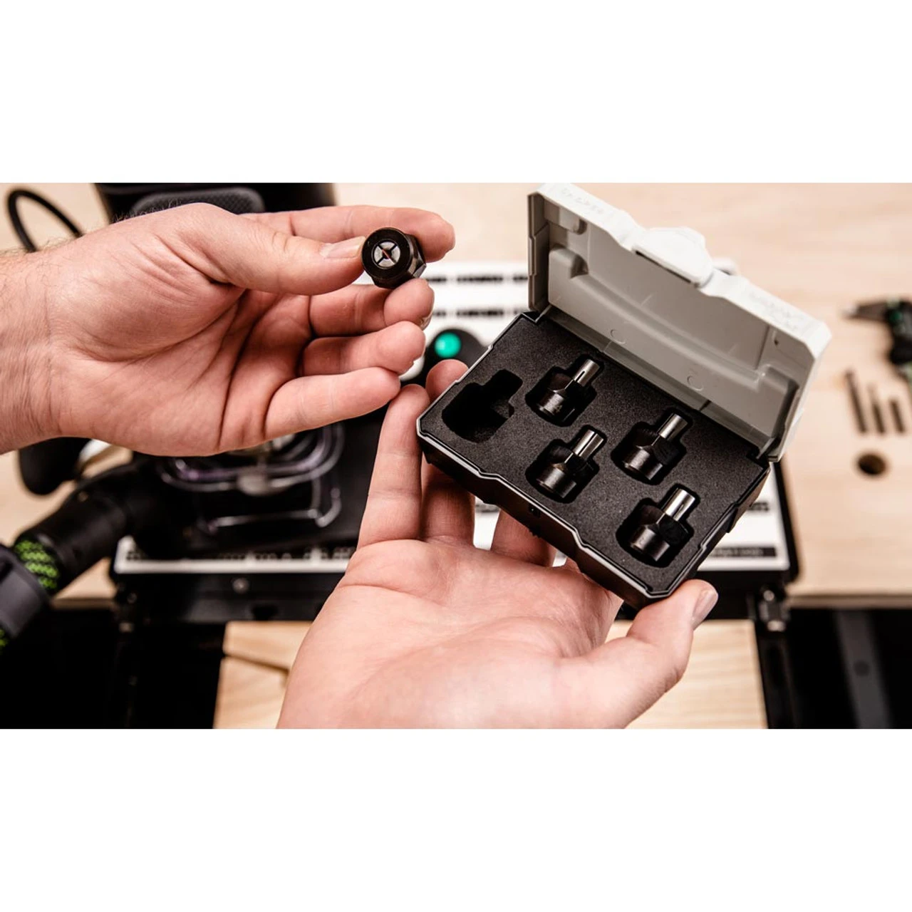 Don’t let collet and cutter mismatches hold you back! Shaper’s complete collet kit includes all basic collet increments in imperial and metric measurements up to 1/4″ and 8 mm, respectively. Every project starts with the right cutter and a collet that’s designed to accommodate it. Don’t rely on after-market adaptors or approximations that can jeopardize your cut quality, cutter and project. Each collet set includes a Shaper Micro-Systainer with customized foam insert to protect and store your collets.