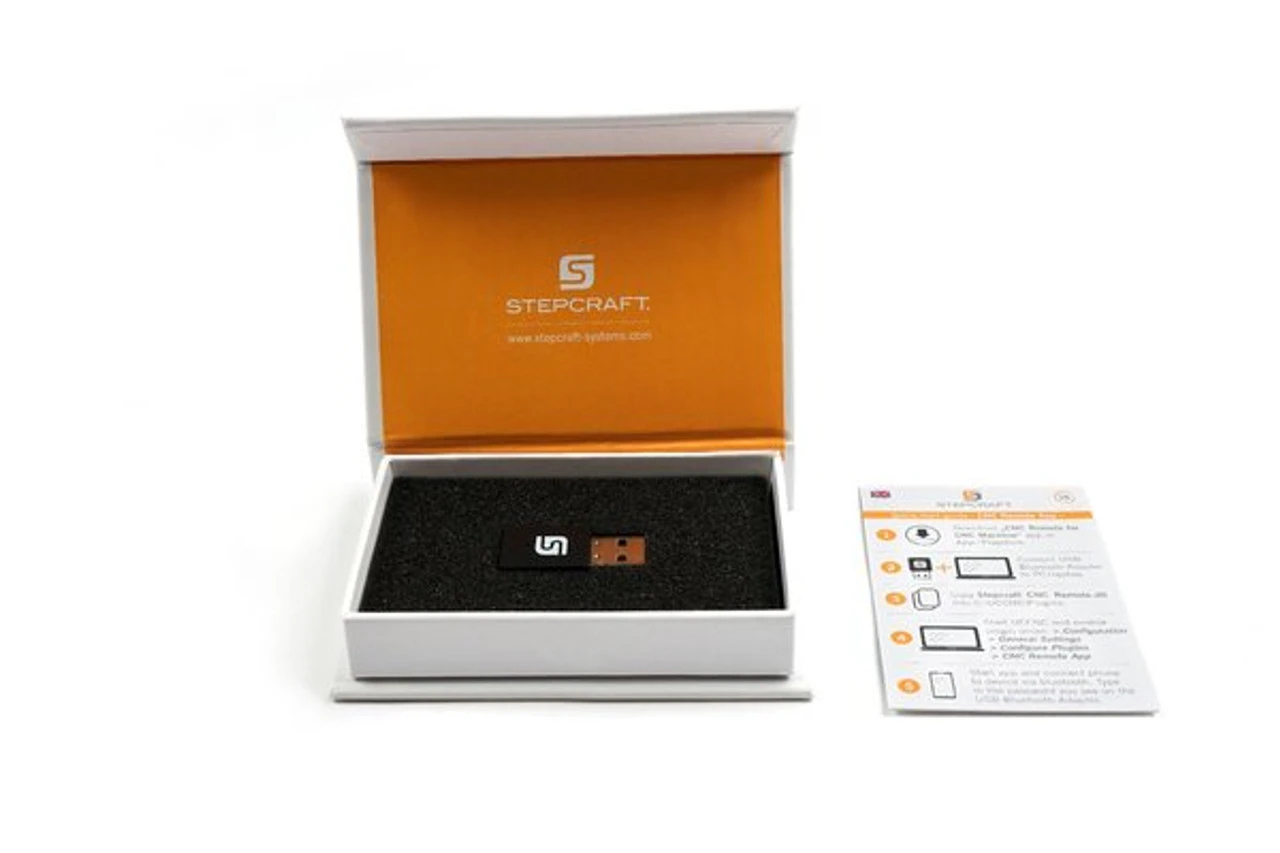 With the CNC Remote Bluetooth USB adapter, your mobile phone becomes a CNC remote control. Simply plug the USB adapter into a free USB slot on your computer and download the corresponding free CNC Remote App from the App Store or the Play Store onto your mobile phone. Once coupled, you can now select and move up to four axes via Bluetooth, set zero points, switch the spindle on and off, regulate the speed or even start/stop the CNC program.