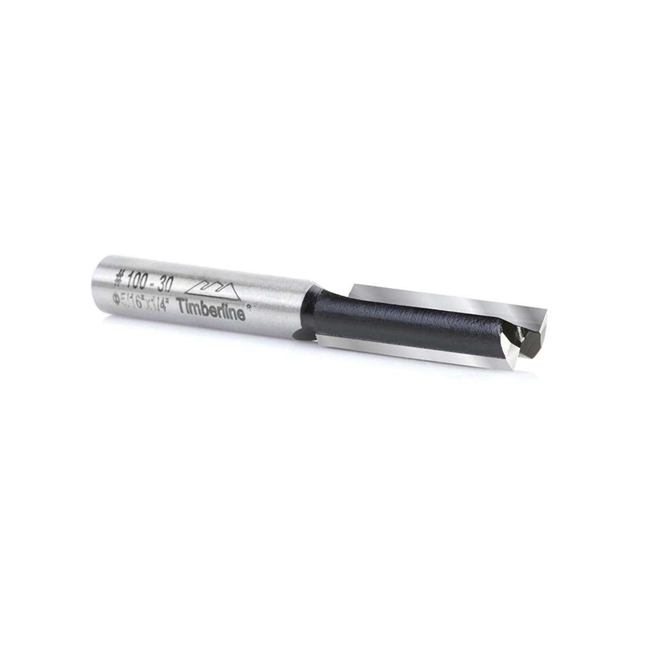 In choosing a straight bit for any application, always select one with the shortest cutting edges and the shortest overall length that will reach the required cut depth. Excessive length intensifies deflection and vibration, which degrade cut quality and lead to tool breakage. Use a two-flute bit where fine finish is paramount. Two flutes balance the bit, eliminating vibration that degrades the cut finish. Two cuts per revolution yield a smooth surface, but feed rate is slightly reduced.